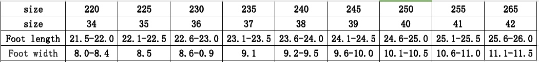 Size: 35, 36, 37, 38, 39, 40